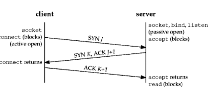 第二次握手:Server收到数据包后由标志位SYN=1知道Client请求建立连接,Server将标志位SYN和ACK都置为1,ack=J+1,随机产生一个值seq=K,并将该数据包发送给Client以确认连接请求,Server进入SYN_RCVD状态